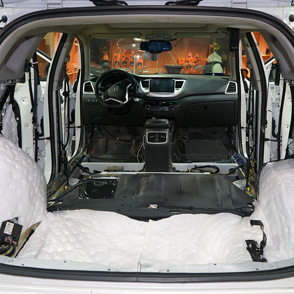 عایق صوتی یک خودرو هیوندای برای افزایش راحتی شامل استفاده استراتژیک از مواد خاموش کننده صدا در مناطق کلیدی خودرو است.