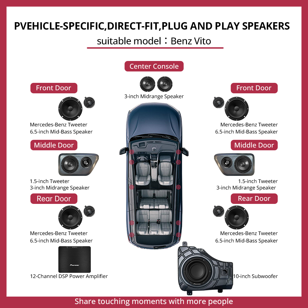 منحصراً برای مرسدس بنز ویتو طراحی شده استبدون نیاز به تغییرات، سازگاری کامل و صدای استودیویی در ون شما!